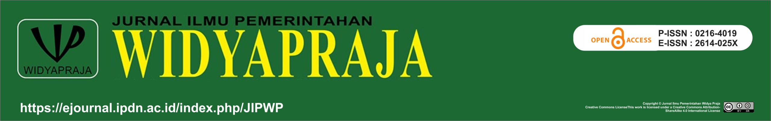 - Each Ilmu Pemerintahan Widya Praja journal, both printed and electronic, is open access for educational, research and library purposes. Beyond this purpose, publishers or journal managers are not responsible for copyright infringement committed by readers or users.